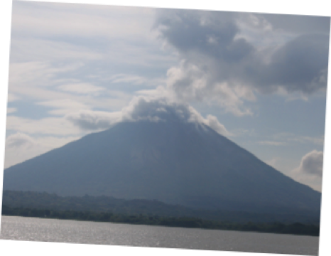 The Island of Ometepe is located in the big lake of Nicaragua.  It is formed by two volcanoes; Concepcion (4430 ft. above sea level) and Maderas (3,833 ft. above sea level).  The two volcanoes make the island look quite majestic.  The name Ometepe comes from the Nahuatil words “Ome” which means two and “tepeti” which means mountains, meaning two mountains, and is pronounced “Oh-mey-tep-ay”.  The island has an area of 276 km. and a population of approximately 35,000.
