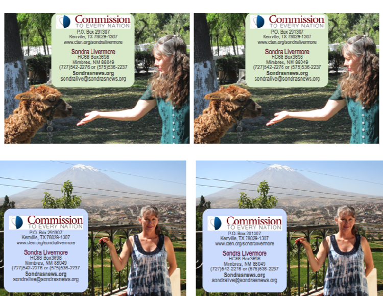 Sondra is working in Central & South America as a full time missionary with Commission to Every Nation (CTEN).  Sondra is raising funds to help Latin pastors with outreach projects and ministry to their communities.  She also partners with Indigenous Training Ministries (ITM) establishing and maintaining Christian Training Centers (CTCs) with the purpose of educating pastors and leadership.
